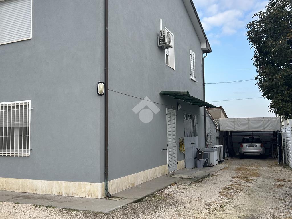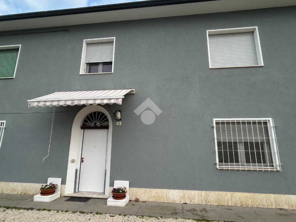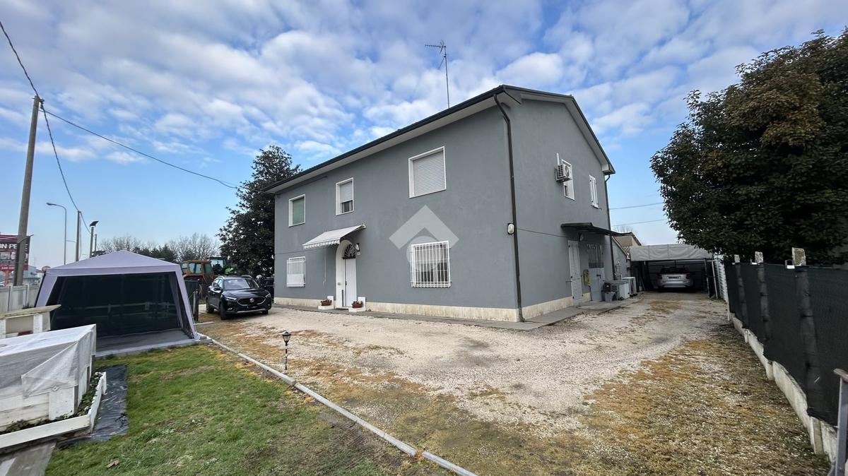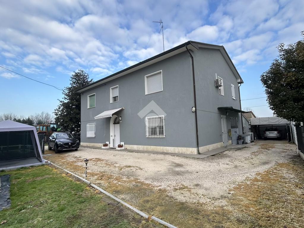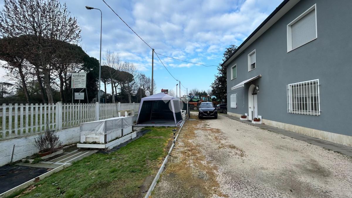 ALFONSINE: in zona servita, disponiamo di porzione di bifamiliare su due livelli con corte esterna di proprietà. Dall'ingresso indipendente si accede all'interno dell'abitazione; al piano terra troviamo la zona giorno composta da soggiorno, cucina separata con accesso all'ampio garage/cantina dotata di bagno di servizio.